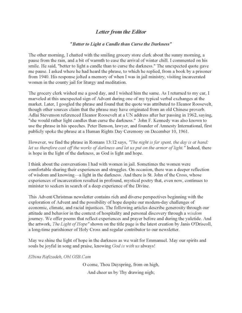 Holy Cross Advent/Christmas Newsletter Share this: Share on X (Opens in new window) X Share on Facebook (Opens in new window) Facebook Like Loading...